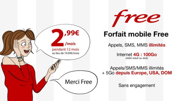 La nouvelle vente privée du forfait Free mobile à 100Go à 2,99 € vient de débuter à 19h00 et, en principe, doit s’achever le 28 mars à 6 heures.