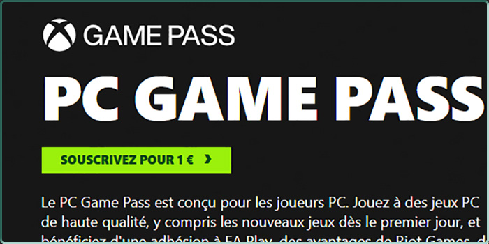 Retrouvez le bon plan du PC Game Pass Microsoft sur le site Xbox de Microsoft.